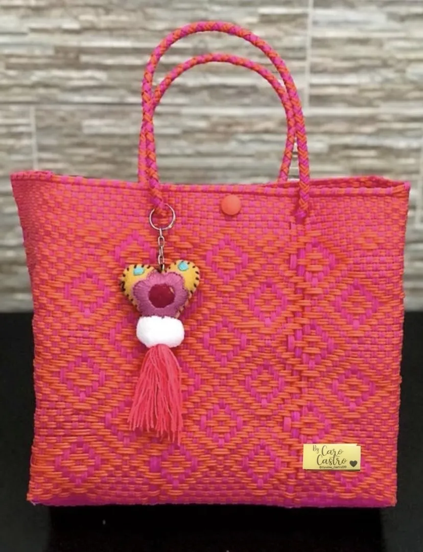 AGOTADO Cartera Tejida Mediana naranja y fucsia